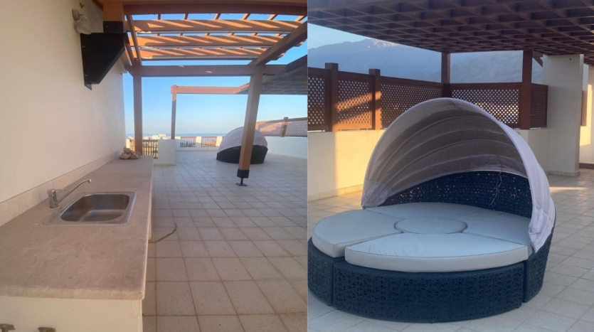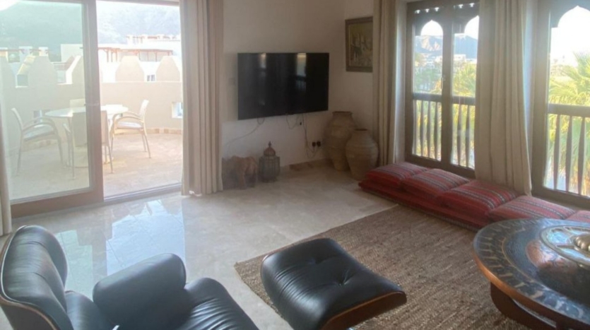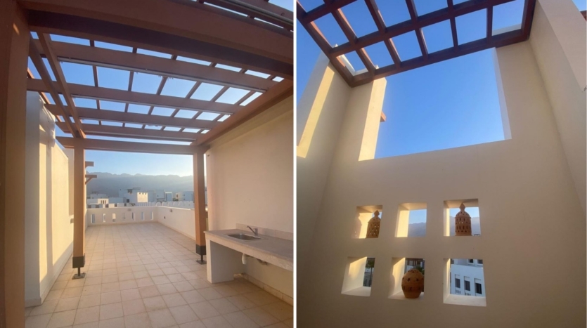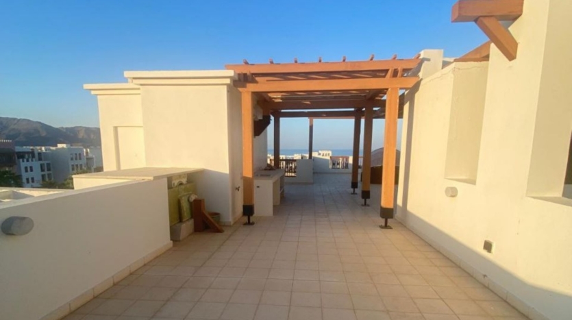 A premium top-floor apartment with a private roof terrace located in Al Sifah Resort, offering generous living spaces, enhanced privacy, and an upscale resort lifestyle.